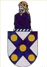 As armas que usam em Portugal são: De prata, com aspa de azul carregada de cinco besantes de ouro, postos em aspa.